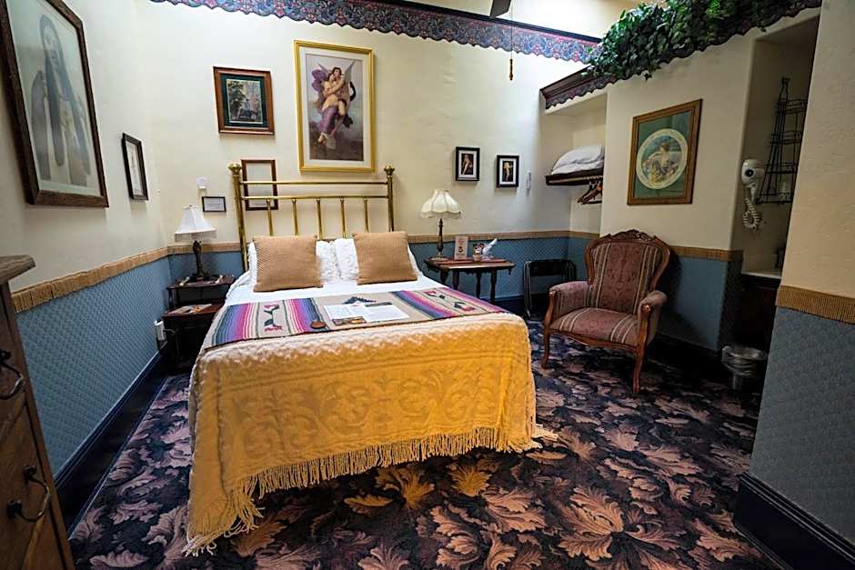 This south-facing room offers views of the historic downtown area from a private balcony, a satellite TV and an private bathroom with antique footed bath tub and shower.